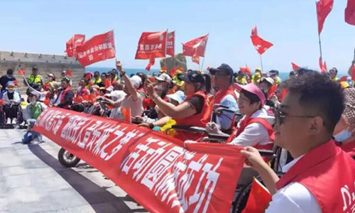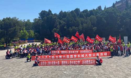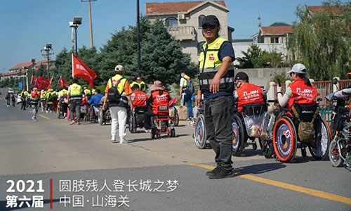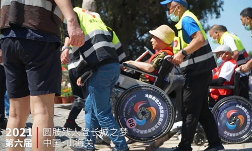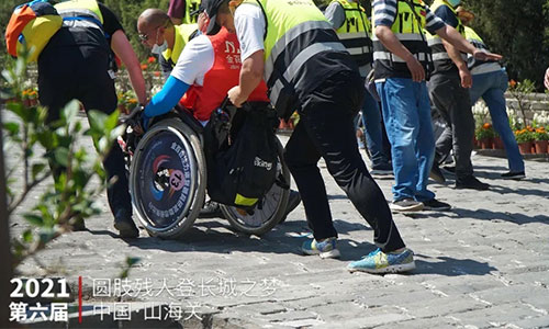 Tim sukarelawan mengawal, roda olahraga dan dengan kerja keras mereka, pengguna kursi roda akhirnya berhasil sampai ke Tembok Besar. Sambil menikmati pemandangan yang indah, mereka berterima kasih atas dukungan dan dedikasi sukarelawan untuk setiap kegiatan sukses yang diadakan.