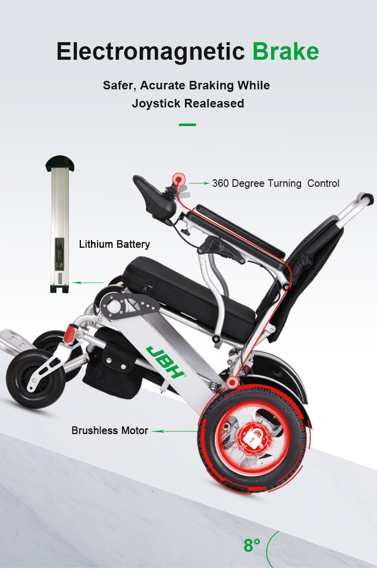 1. Kursi roda listrik dapat dilipat atau dibuka dalam satu detik, mudah dibawa sebagai barang bawaan di pesawat atau di kereta.